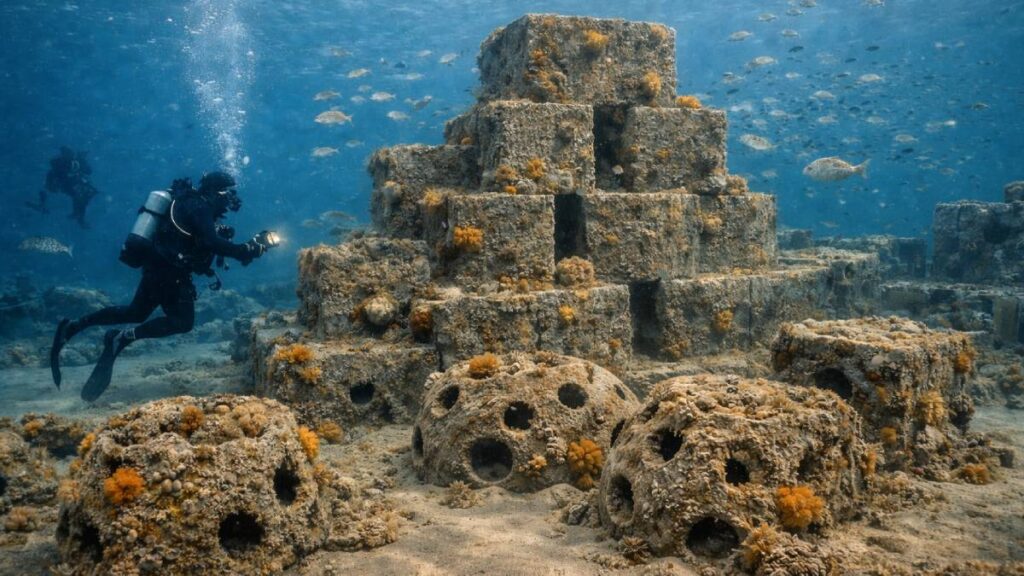 A diferencia de otros arrecifes artificiales creados a partir de barcos hundidos o estructuras metálicas en desuso, esta iniciativa apuesta por el uso de materiales sostenibles. El hormigón ecológico fue elegido por su durabilidad y su capacidad de integrarse de manera más eficiente al entorno marino, evitando procesos de degradación que sí ocurren con otros materiales a lo largo del tiempo.