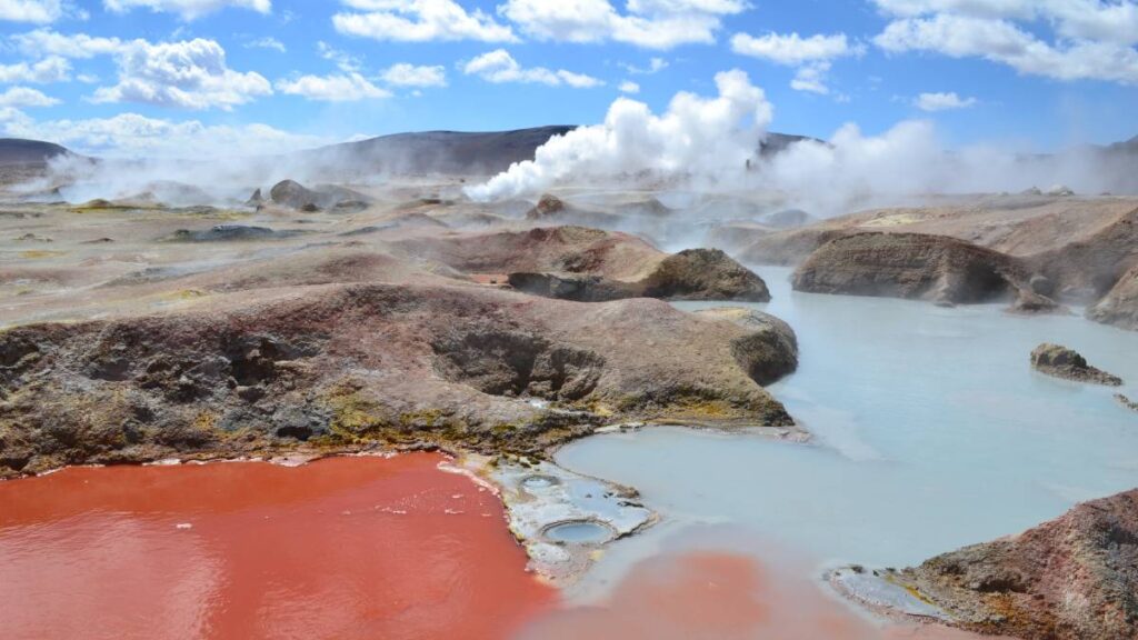 Otro de los grandes tesoros naturales del país es la Reserva Nacional de Fauna Andina Eduardo Avaroa, un paisaje volcánico que parece sacado de otro planeta. Lagunas de colores intensos, fumarolas geotérmicas y colonias de flamencos convierten a este remoto rincón del altiplano en uno de los escenarios más fotografiados del país.