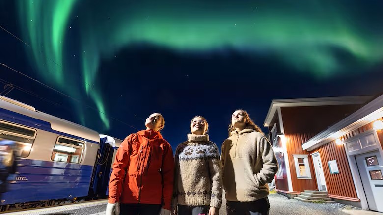 El destino final es Katterat, un pequeño enclave de montaña sin contaminación lumínica, donde los viajeros participan de una experiencia guiada que incluye caminatas, relatos sobre la vida en el Ártico y una fogata al aire libre. Allí, la espera de la aurora boreal se convierte en una vivencia inmersiva que combina cultura local y contacto con la naturaleza.