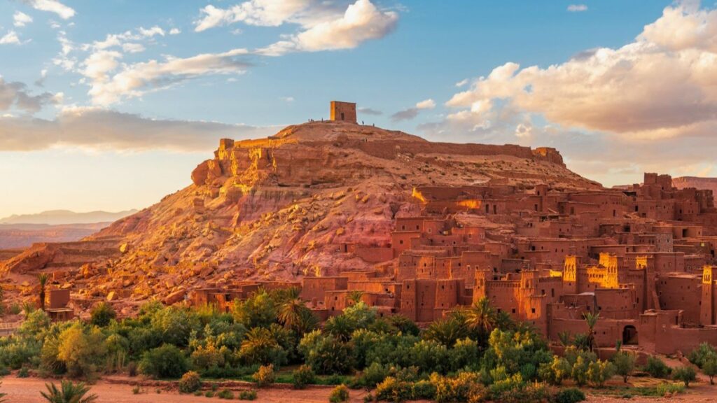 El itinerario recorre aldeas fortificadas como Ait Ben Haddou, reconocidas por su arquitectura de adobe y su aparición en películas internacionales. La ruta permite contemplar paisajes impresionantes y conocer la historia viva de la región.