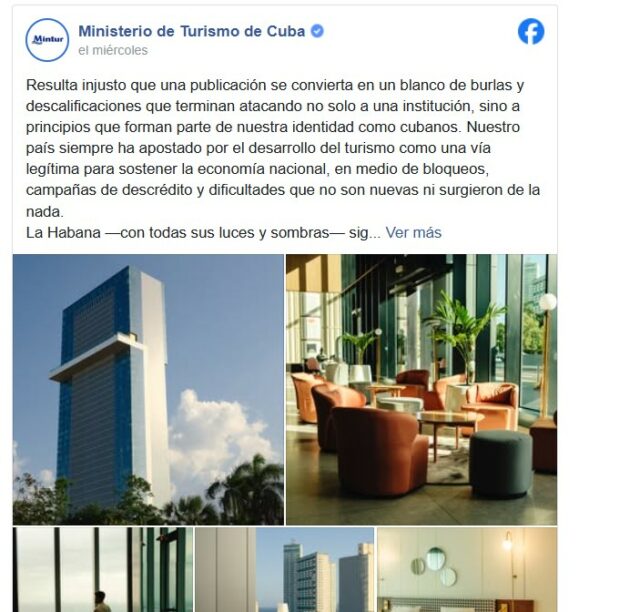 La controversia se originó a partir de una publicación en Facebook en la que el Mintur promocionaba el hotel de lujo ubicado en La Habana. Ante la reacción de usuarios, el organismo respondió que los comentarios resultaban “burlones e injustos” y que terminaban atacando no solo a la institución, sino también a principios vinculados con la identidad nacional.